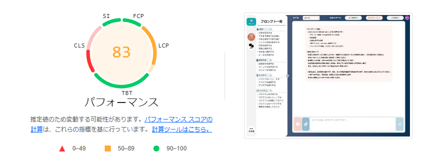 ちなみにLighthouseを利用してパフォーマンスチューニングも実施しています。